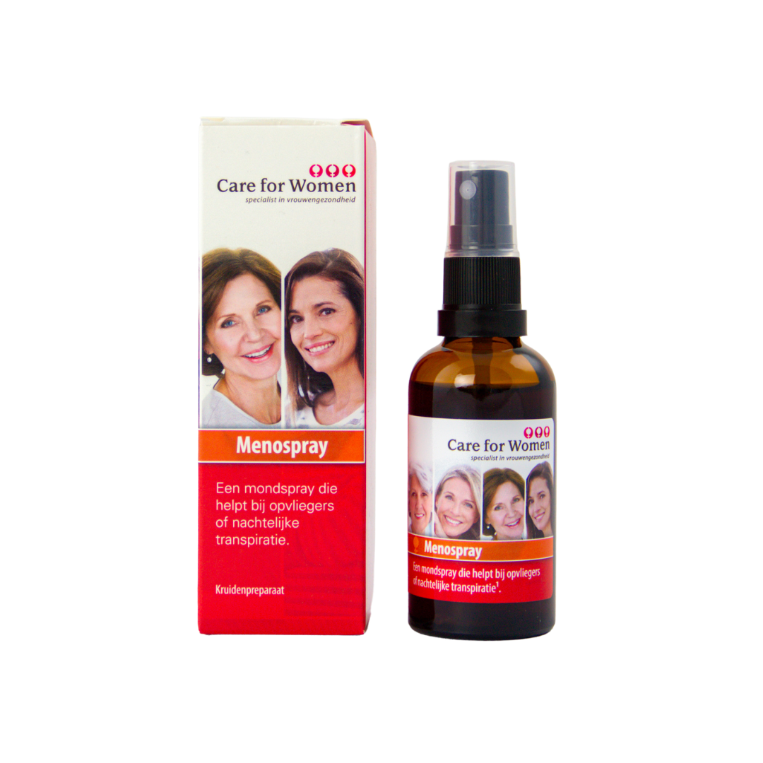Opzoek naar een directe ondersteuning bij opvliegers en/of nachtelijke transpiratie? Dan is de Women’s Menospray een goede keuze. Deze handige mondspray bevat Salie, dat bekend staat om haar positieve invloed op overgangsklachten. De verstuivingen onder de tong zorgen direct voor een snelle opname via het mondslijmvlies, waardoor er een snel resultaat ervaren wordt. Door de kleine verpakking is de Menospray eenvoudig overal mee naar toe te nemen, zodat jij altijd ondersteuning hebt zodra een opvlieger optreedt of nachtelijke transpiratie je uit je slaap houdt. Doordat het een plantaardig middel is, kan de Women’s Menospray regelmatig en voor langere tijd gebruikt worden. Daarnaast kan de Women’s Menospray goed gecombineerd worden met andere menopauzeproducten, zoals de Women’s Menopause en Menopause Complete.